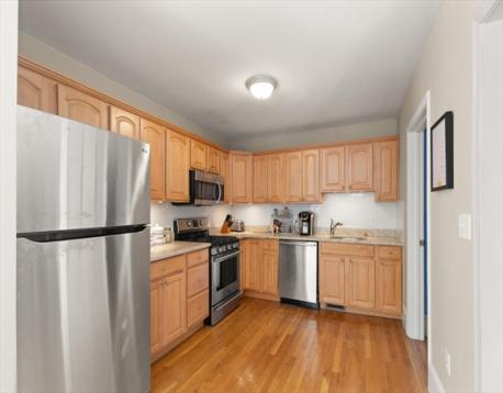 Welcome to this bright, well-maintained 2-bedroom, 1-bath condo in West Revere—an ideal opportunity for affordable homeownership without the upkeep. Hardwood floors run throughout the unit, and the convenience of in-unit laundry adds everyday ease. A spacious living and dining area provides comfortable room for relaxing or entertaining. Whether you're a first-time buyer or someone seeking a low-maintenance lifestyle, this home delivers practical comfort in a clean, sun-filled layout. The unit includes an assigned parking space plus on-street parking options. A private 100 sq. ft. basement storage room offers valuable extra space for seasonal items, hobby gear, or household overflow. Located close to shopping, schools, parks, and public transportation, this condo offers the perfect blend of comfort and convenience. If you’re looking for a move-in-ready home with effortless living,