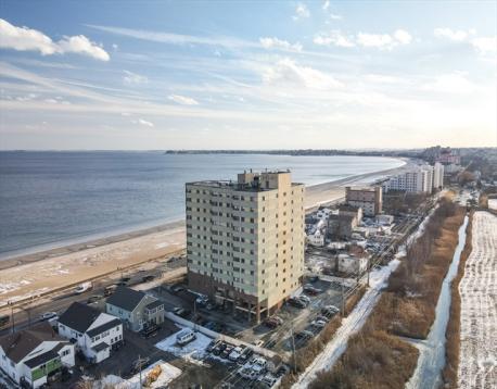 Stunning ocean views from this desirable 2 bed/2 bath corner unit with a thoughtful open-concept design. The modern kitchen with a waterfall quartz island and stainless steel appliances flows into the dining area and living room with sliders to a private balcony overlooking Revere Beach. The primary suite surprises with a large walk-in closet, full bath, and laundry. A 2nd full bath and bedroom with a double closet, and a convenient entry storage closet complete this unit. Condo fee includes heat/AC, hot water/sewer, plus additional amenities including a deeded parking space, visitor parking, year-round heated pool, patio, sauna, storage, and locker room to make your beach days a breeze. One mile to the Wonderland T Station, which is just a 15-minute ride to Boston. 1st showing at the 1st Open House on Saturday, 2/28 and Sunday, 3/1 from 11:00 AM-12:30 PM.
