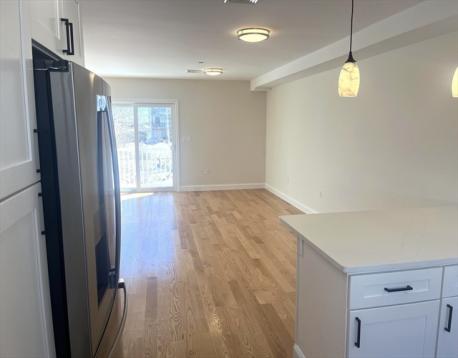 NEW CONSTRUCTION TOWNHOUSE - Just steps from Revere Beach on a quiet, dead-end street. Coveted END UNIT, filled with natural light - main floor has open floor plan, spacious kitchen with quartz countertops and GE stainless steel appliances, living room with dining area, and slider leads to a balcony facing the beach. Half bath on first level. Second level features 2 bedrooms plus an office / bonus room, IN UNIT laundry closet. Hardwood floors throughout, HVAC, drop-down door leads to attic space for extra storage. Spacious garage with room for storage. See the beach from your bedroom, it's only a short walk away.
