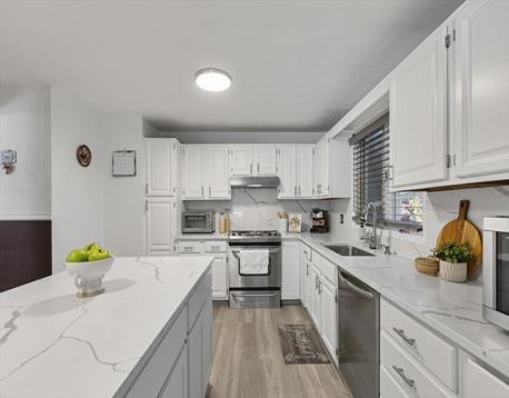 This Revere GEM offers so much! Whether for multi-generation living, large rental incomes, to live in unit A while allowing the very large unit B to pay most of mortgage or even with an eye to potential condo conversion; this well-maintained property will benefit any savvy buyer. Boasting a huge deck, patio & yard, tons of parking, a private garage & even more off-street parking on the bordering side street. One enters Unit A thru a fab sun room into a 2-story with unfinished basement; offering 2 bedrooms, several sitting/office areas, ample closets, front to back living/dining/kitchen and 1 & 1/2 baths. Unit B feels like a split level upon entry with access to the finished walk-out lower level with 2nd kitchen, full bath, former jacuzzi room, utilities/storage & a 1-car garage. Upstairs you'll find a large, open, living/dining/kitchen area w/ 1/2 bath & access to the oversized deck & yard. The 3rd floor offers 3 beds, laundry & full bath w/bidet. So many updates listed in disclosures.