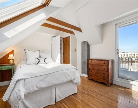 Sunny, updated cottage-style home by the sea, featuring stunning ocean views, just a short stroll from Forest River Park. The beautifully renovated kitchen offers custom cabinetry and a sun-drenched breakfast area with panoramic sea views. Each bathroom has been tastefully updated with custom tilework. In the living room, enjoy built-in shelving, a cozy fireplace, and an effortless flow into the dining room—perfect for entertaining. The main bedroom is spacious enough for a private sitting area or home office. For those who can resist the distraction of the waves, an additional heated sunroom offers a serene secondary workspace. The 3rd floor bedroom is a quiet retreat featuring a sitting room and a private balcony with sweeping harbor views. Outside, the back porch is perfect for watching harbor activity, leading to a charming yard for gardening and al fresco dining. Two-car garage and 2 additional parking spaces. Unique floor plan offers flexibility to easily create a third bedroom.