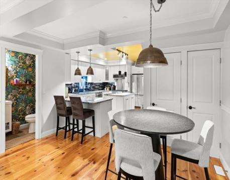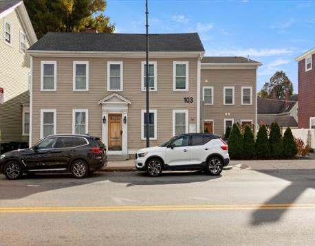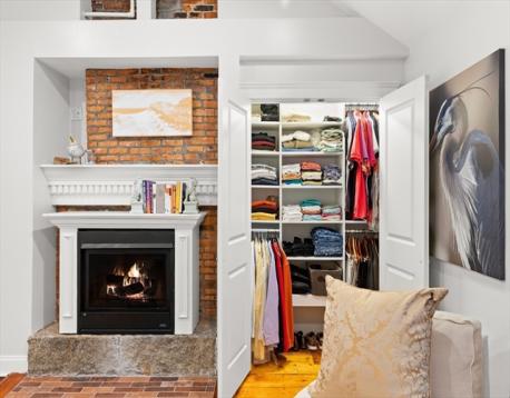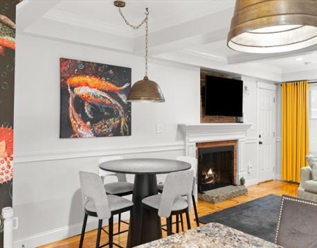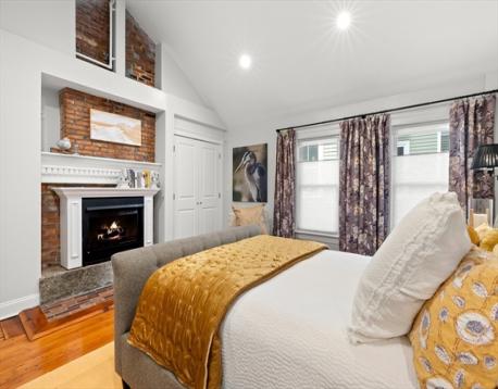 This stunning 2 bed, 2 1/2 bath townhouse combines timeless Salem charm with modern sophistication, ideally located near Salem Common, the PEM, downtown restaurants, shops, and the MBTA. The open-concept kitchen features granite counters, stainless appliances, center island, and a breakfast bar that flows into a light-filled dining and living area accented by an exposed brick chimney and gas fireplace. Upstairs, the primary suite showcases a cathedral ceiling, original fireplace, and a spa-inspired bath with double vanity and tiled walk-in shower. The second bedroom includes an ensuite bath with a tiled tub surround. Wide pine floors, second-floor laundry, central air, gas heat, and generous basement storage offer comfort and convenience. Two common patios and one assigned parking space complete the package. Fully updated in the 2016 conversion with Hardie board siding, new roof, windows, furnace, AC, and insulation, this home offers the perfect balance of character and style.