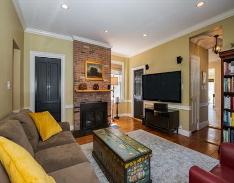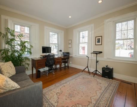 Updated and meticulously maintained ground floor unit in a historic late Georgian house (1799) just four homes off Salem Common on a quiet one-way street. Close to downtown, the waterfront, Pickering Wharf, restaurants and the Salem Commuter Rail Station, this stylish unit in the heart of historic Salem features a well-appointed gourmet kitchen with high-end appliances, granite counters and recessed lighting; two good-sized bedrooms, including the beautiful front room with four large windows and working Indian shutters; a living area with a fireplace and built-in cabinets; and high ceilings and restored antique pine floors in the living area and front room. The bathroom is masterpiece of premium tile and high-end fixtures. Outside, bonuses include exclusive use of a private blue-stone patio, large common yard and off-street parking. First showing at the Open House 11:30 AM - 1 PM Saturday April 19 and Sunday April 20. Offers due April 21 Tuesday at 2 PM.