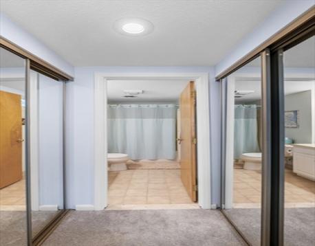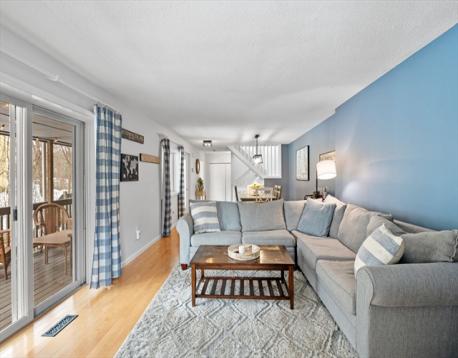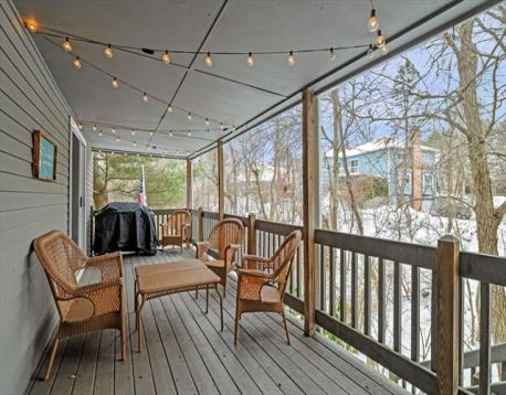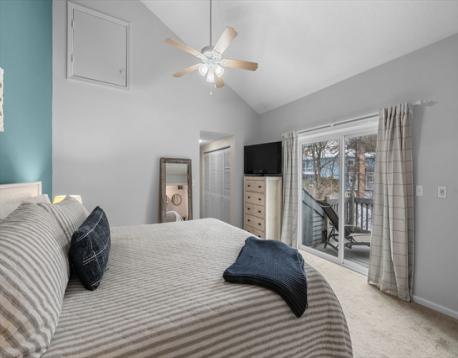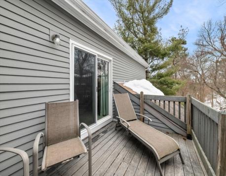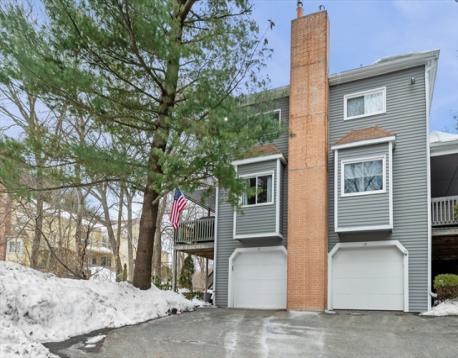 Spacious and beautifully situated, this 2-bedroom, 2.5-bath townhome is one of the largest L-shaped units in the community. Upon entry, you’re welcomed by an expansive living room w/gas fireplace & large dining room, offering an open and inviting layout. The updated kitchen provides direct access to a large covered Trex deck, perfect for indoor-outdoor living & entertaining. A convenient half bath completes the main level. Upstairs, both generously sized bedrooms feature en suite baths and direct access to private upper decks, ideal spots to enjoy morning coffee or unwind with an evening cocktail. The finished basement offers versatile additional living space, perfect for a home office, media room, or man cave. This private end unit is tucked at the end of the road and surrounded by peaceful woodlands, offering a serene and secluded setting. Additional highlights include a spacious two-car garage with abundant storage. A rare opportunity combining space, privacy, and comfort.
