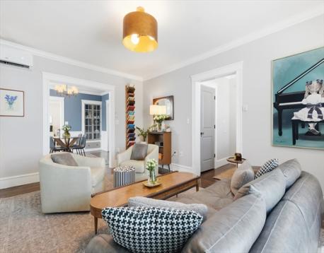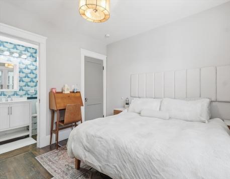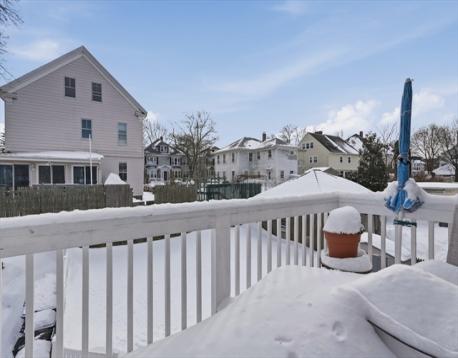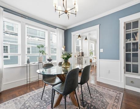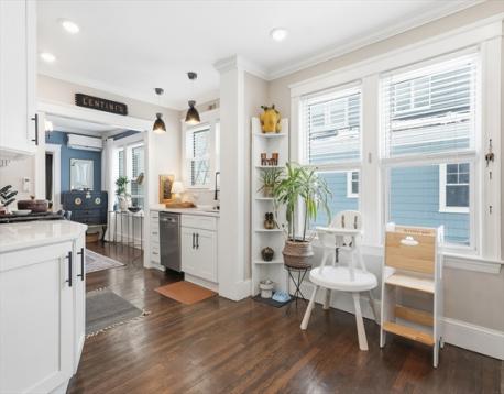 Welcome home! A charming covered porch invites you into this beautiful condo offering 3 bedrooms & 2 baths w/ HW floors throughout. The updated kitchen features modern shaker cabinetry, granite countertops & SS appliances, w/ a spacious layout ideal for both everyday living & entertaining. The open-concept living area flows effortlessly into the bright dining room, highlighted by a custom built-in cabinet w/ glass doors. The inviting living room features an electric fireplace & French doors leading to a sun-filled sunroom. All three bedrooms are generously sized w/ ample closet space, including a primary suite w/ a private en-suite bath & walk-in shower. Addit'l highlights include in-unit laundry, dedicated basement storage, private back porch & fenced-in yard. Ideally located just minutes from beaches, scenic parks, popular shops & top-rated restaurants, w/ planned nearby commuter rail access adding even more convenience—this home offers the perfect blend of comfort and accessibility.