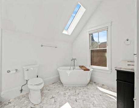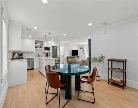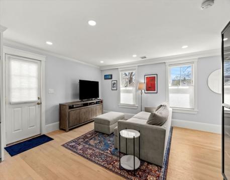 Sophisticated, sun-drenched 3BR residence impeccably renovated in 2021 with refined, high-end finishes throughout. The open-concept main level showcases a designer chef’s kitchen with quartz surfaces, gas range, oversized island, and bespoke inset cabinetry offering exceptional storage. Elegant living and dining spaces are enhanced by southern exposure, complemented by in-unit laundry and a beautifully appointed full bath. The primary suite features a generous closet and a luxurious marble bath with walk-in shower. Upstairs, a second primary retreat with cathedral ceilings and double closets, plus a third bedroom and a spa-caliber bath with skylights, marble floors, double vanity, soaking tub, and glass-enclosed shower. Includes deeded storage, private secondary entrance, and two tandem off-street parking spaces. Premier Derby Street neighborhood location moments from Salem Common and Pickering Wharf.