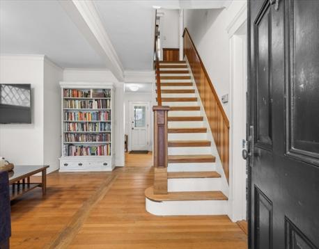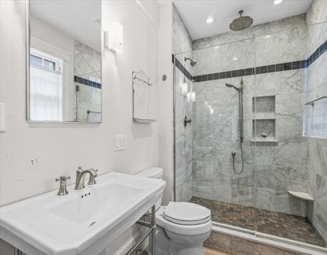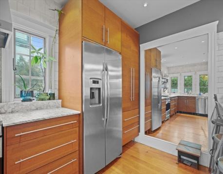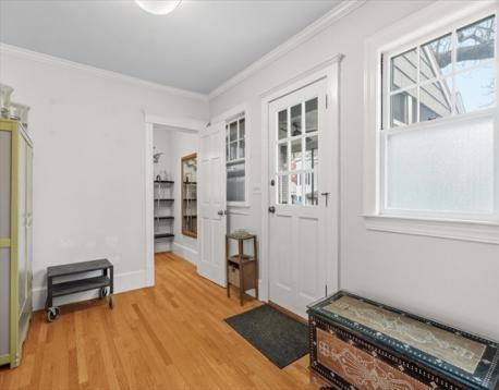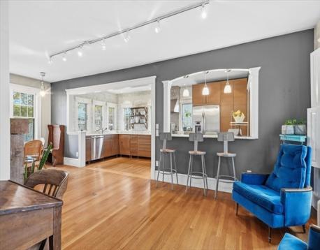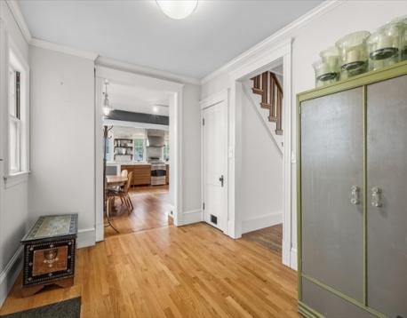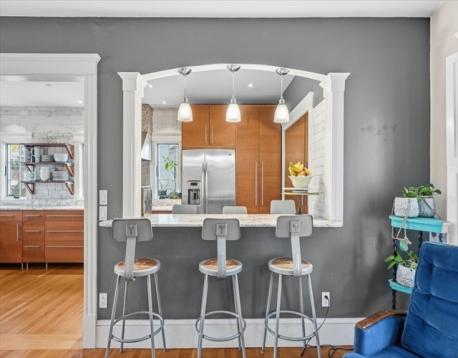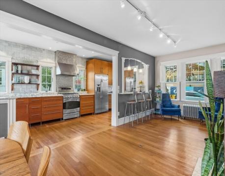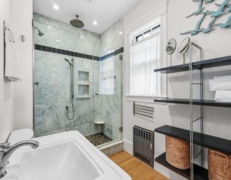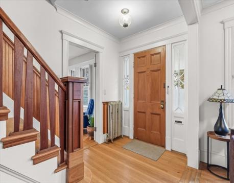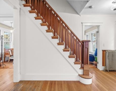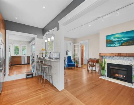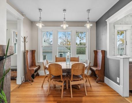 This classic Four Square Craftsman style Colonial combines period features and modern living into this beautiful residence. Welcome inside to discover timeless details such as leaded windows, a French door, elegant millwork, hardwood flooring & crown molding throughout providing an opportunity to own a classic home with all the modern comforts such as the updated beautiful spa like bathroom and gourmet custom-built, open kitchen with a gas fireplace. The inviting living, kitchen, dining, bath mudroom & sunporch are located on the first floor with a handcrafted stairway leading to the 2nd- featuring 4 bedrooms, a full bath & "walk-up" attic offering a finished heated bonus room or storage The basement also offers a finished bonus room. The exterior features a cozy & private fenced yard, 2 car garage & additional parking. Ideally located in South Salem near the College and MBTA. Very close to a neighborhood beach or Forest River/Bike trail. Peek at ocean views from the back of property