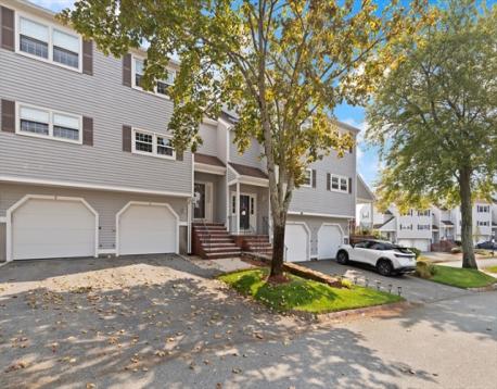 Experience modern living in this beautifully appointed townhouse located in the unique Highland Condominium community. The heart of this home is a country-style eat-in kitchen, fully upgraded with granite countertops, a custom island, and stainless steel appliances. Large windows over the sink flood the space with natural light. The oversized living and dining room combination features gleaming hardwood floors and a sliding glass door that opens to your private deck—perfect for morning coffee.The third floor offers a primary retreat with two full bathrooms, a customized closet system, and the convenience of a newer laundry room. The lower level provides incredible flexibility with a family room featuring bespoke closetry, a half bath, and direct walk-out access to a private patio and yard. Enjoy resort-style amenities including an inground association pool, professional landscaping, and easy access to public transportation and shopping.