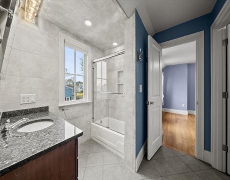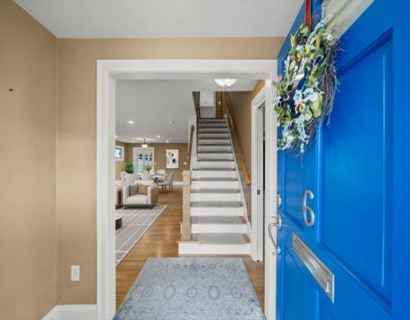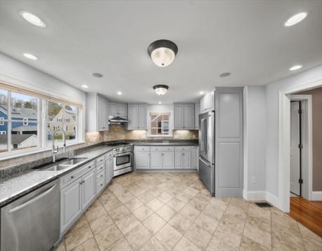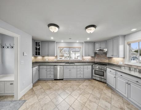 Experience refined coastal living in this stunning Salem home filled with upscale finishes and timeless charm. The open-concept main level features a beautifully designed kitchen with granite countertops, SS appliances, and a gas range. The dining room, with French doors, leads to a deck perfect for entertaining. Enjoy the warmth of a gas fireplace in the living room, highlighted by exquisite stained glass windows. A dedicated office, family room, and 3/4 bath complete the first floor. Upstairs, the primary suite boasts a spa-like bath with soaking tub, tiled shower, and two vanities. Three additional bedrooms with custom closets and gleaming hardwood floors share a full bath. Second-floor laundry adds convenience. The immaculate walkout basement offers a partially finished bonus room and storage. The fenced backyard features a shed and patio with pergola, ideal for outdoor gatherings. Located on a cul-de-sac with peek-a-boo bay views, close to all Salem has to offer. Welcome home!