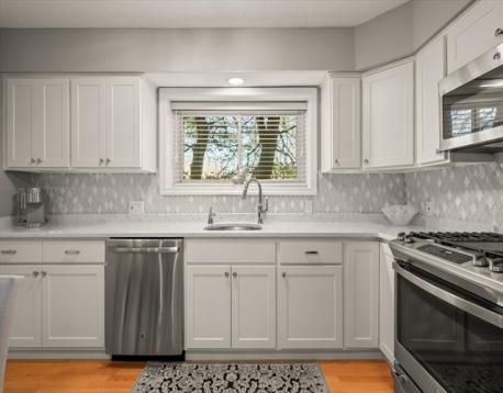 Welcome Home! Move right into this immaculate 2-bedroom, 2.5-bath townhouse where no expense was spared. This freshly painted home features premium updates throughout, including new windows and sliders, custom closets, and a brand-new water filtration system.The beautiful kitchen shines with quartz countertops, stainless steel appliances, and elegant Swarovski crystal hardware. Relax by the gas fireplace in the inviting living room and enjoy the convenience of a new washer/dryer and a spacious 2-car tandem garage. Truly move-in ready!