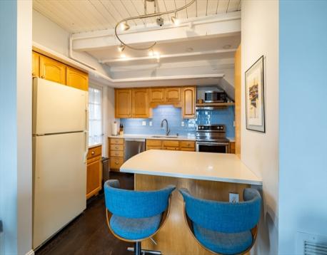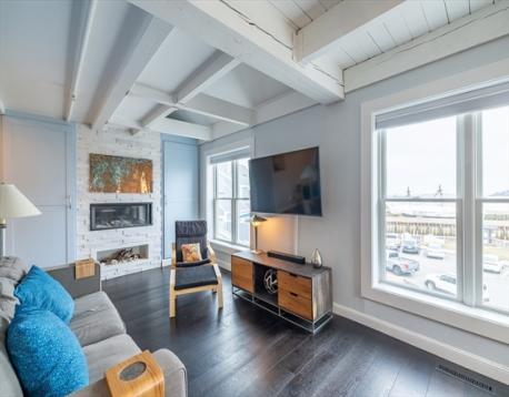 Desirable, direct water-view Pickering Wharf townhome is now available - offering a spectacular, unobstructed full view of Salem Harbor! Be immediately impressed by the fully updated interior, featuring a stunningly renovated kitchen and bath that are sure to captivate. This multi-level, 1-bedroom home boasts nearly 1,000 square feet of beautifully designed living space, plus a dedicated home office loft with gorgeous wharf and harbor views - ideal for today’s work-from-home lifestyle. Natural light streams throughout, highlighting exposed ceiling beams, gleaming hardwood floors, and a cozy gas fireplace that brings classic New England charm to this waterfront gem. Experience the best of waterfront living in one of Salem’s most lively neighborhoods - the perfect place to relax and take in breathtaking harbor views. Additional highlights include radiant heat throughout the bedroom and bathroom on the 4th level, deeded parking spot, and access to a nearby garage for extra parking. Enjoy!