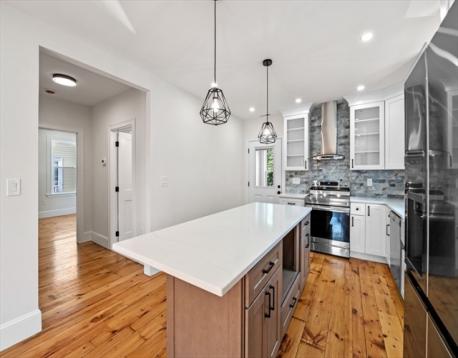 Beautifully Renovated 3 bedroom 2 bath townhouse unit. No expense was spared on this renovation. This big beautiful upper unit townhouse features large yard and garage. Sun-splashed open concept Living-Dining eat-in- kitchen. Kitchen features shaker cabinets, stylish tiled backsplash, bar Island, Quartz counters, new stainless-steel appliances. Huge primary suite features en-suite bath with designer tiled shower, 2 walk- in closets and Cathedral ceiling. Large bedrooms, office, pantry, full bath featuring double bowl vanity round out the second floor. Laundry in unit. Gleaming freshly refinished original wide pine & oak floors. New plumbing & electrical throughout. New 2 zone high efficiency heat pump heating and cooling. Pet friendly assoc. 1 Deeded garage plus freshly paved 2 car driveway parking. Conveniently located with easy access to highways & train. Basement exclusive-use storage area. Seller would offer concession for closing costs.