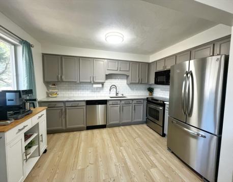 This townhouse in Sheffield Heights offers maintenance-free living within a gated condo complex featuring a pool, clubhouse, tennis court, and lush landscaping ideal for refreshing walks along secluded roads. It blends modern updates with comfort: quartz countertops and backsplash, stainless steel appliances, and fresh interior paints. Bathrooms are ceramic-tiled with updated granite vanities and ample cabinetry. Spanning four levels (three with outdoor access via sliding doors) and equipped with central heating and cooling, the home provides versatility and year-round comfort. The first level includes a dining room opening to a closed deck; the lower level connects to the backyard; the third level grants access to a porch from the principal bedroom’s full bath. Location is convenient to Rt 1, shopping plazas, and more, enhancing the appeal of this stylish, low-maintenance residence.