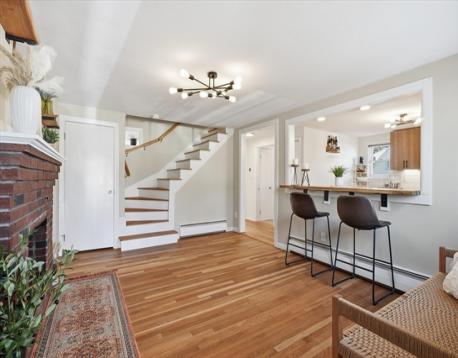 Beautifully updated 3-bedroom home offering a refined balance of comfort, style, and thoughtful design. The main level welcomes you with a fireplaced sitting room that flows seamlessly into a fully renovated kitchen, featuring custom cabinetry, quartz countertops, and a striking acacia wood bar top that anchors the space. A separate living and dining area adds depth to the layout, while a first-floor bedroom provides flexibility for guests or a private home office. Upstairs, two generously sized bedrooms offer a spacious & peaceful retreat, complemented by hardwood floors that run throughout the home, adding warmth and continuity. The outdoor space is equally inviting, with a fenced yard, patio, and pergola creating a private, well-designed setting to relax and recharge. An attached garage, and a convenient location round out this property, making it the total package. Thoughtfully designed, meticulously maintained, and effortlessly inviting, you're not going to want to miss this one!
