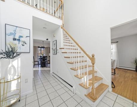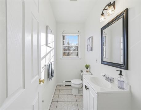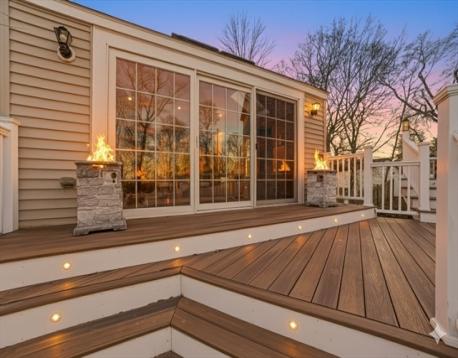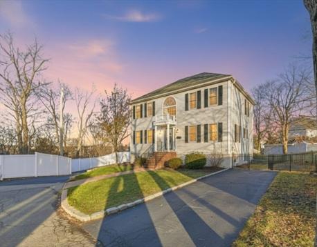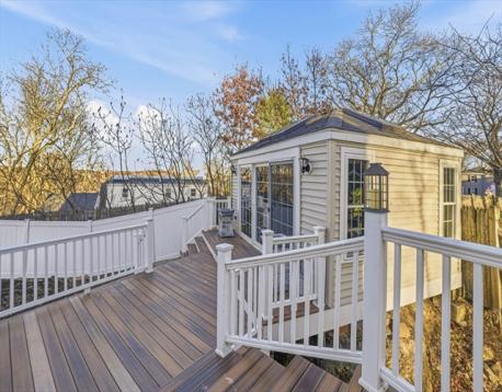 Welcome to 5 Stanley Terrace — a perfectly perched young colonial on a quiet dead-end road, offering a two-car garage & 2 separate driveways with room for everyone! The entry impresses instantly with its dramatic two-story balcony and new chandelier. Enjoy a timeless eat-in kitchen that opens to a beautiful multi-tiered deck ideal for entertaining, plus a cozy living room with a wood-stove and second deck access. A welcoming formal dining room, sun-drenched office or den & half bath complete the 1st floor. The private primary suite upstairs features a large walk-in closet & spa-like bath with a soaking tub & walk in shower with double vanity. The finished lower level offers fantastic potential for an accessory dwelling unit or teen suite with full-size windows & 2 exterior access points. Adding to the uniqueness is a heated outbuilding with skylights—perfect for a hot tub room, yoga studio, home gym, office, or teen hangout. A fantastic commuter location too, only 10 miles to Boston!