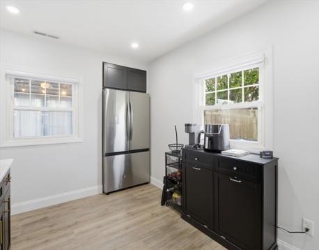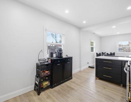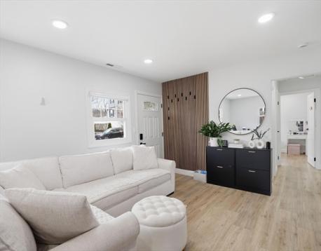 Welcome to this beautifully updated ranch offering easy one-level living on a quiet dead-end street. This home features 3 bedrooms, 1 bath, a heated 3-season sunroom, and two driveways for ample parking. Enjoy a bright and inviting sun porch perfect for morning coffee or dining overlooking a fully fenced, landscaped backyard. Inside, you’ll find hardwood floors, a comfortable living room ideal for relaxing or entertaining, and an open-concept kitchen with sleek black quartz countertops for a modern, welcoming feel. A convenient laundry and utility room sits just off the kitchen. Major updates include a roof approx. 8 years old with new wood and joists, brand new AC system, Navien tankless water heater, and a partially floored attic with lighted storage. Vinyl siding, gas heat, town water/sewer, and solar panels help keep costs low. Expansion potential adds future value.