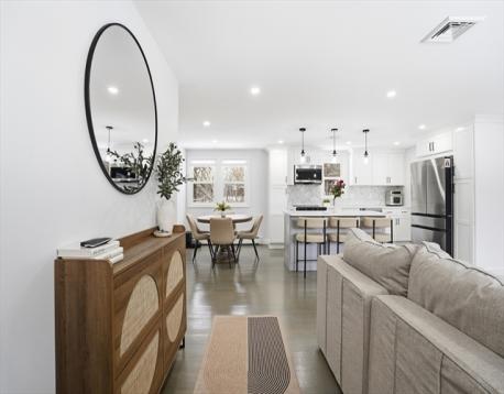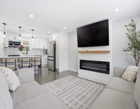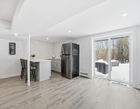 Welcome home to this beautifully updated home that is sure to impress! The open-concept living room & kitchen create a bright & inviting space. The living room features a shiplap accent wall w/ an electric fireplace & a large picture window that fills the space w/ natural light. The kitchen offers a spacious island w/ seating, upgraded cabinetry, modern countertops, bespoke appliance & dining area. Down the hall, you’ll find a remodeled full bath & three bedrooms, each w/ ample closet space. The finished lower level expands your living space w/ a spacious family room complete w/ a kitchenette & sliding glass door leading to the backyard. A versatile bonus room & ¾ bath provide ideal space for guests, a home office or a play area. Addit'l features include central A/C, patio area, a serene stream in the backyard & a storage shed. Conveniently located moments from Rte1 its abundance of shopping & dining options, this home truly has it all. Start making memories in your new home today!
