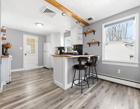 Charming, turnkey ranch offering easy one-level living with privacy and future expansion potential. Immaculately maintained and updated inside and out, this 2-bedroom home features generously sized rooms, an updated full bath, and a renovated kitchen with handcrafted butcher block counters and central air. Private deck overlooks the Saugus River, creating a peaceful outdoor retreat. Beautifully maintained lot nicely landscaped with two driveways, ample parking, two sheds, and a private backyard. Walk-out lower level with large egress window offers excellent potential for additional finished space. Updated Hardie board siding for low-maintenance living. Quiet side street location near Route 1, shopping, dining, and commuter routes to Boston. Ideal for first-time buyers, downsizers, or a condo alternative without sacrificing privacy or charm. This home has been truly loved and ready for its next chapter!