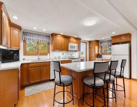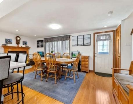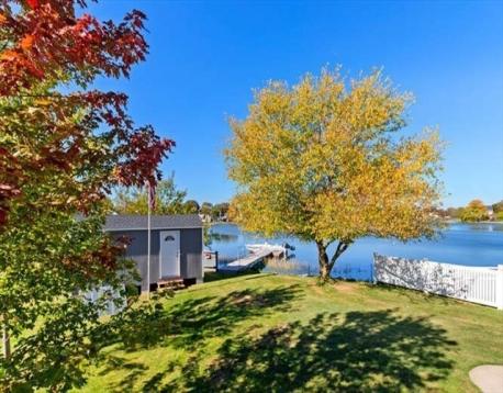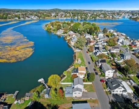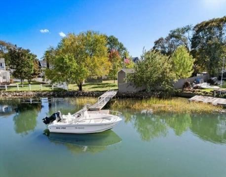 Fisherman’s delight — or simply enjoy the view! Located directly on the scenic Saugus River with your own private dock, this special home offers the perfect blend of comfort, condition, and waterfront living — and the seller says the boat stays! The first floor features an open-concept kitchen and dining room with a working wood-burning fireplace, ideal for gatherings year-round. A spacious family room and convenient half bath complete this level. The large eat-in kitchen includes an island and access to a 22’x24’ deck with awning and night lighting, perfect for entertaining while overlooking the water. Upstairs you’ll find three bedrooms and a full bath. The high-ceiling basement offers excellent potential for finishing to add more living space. Recent improvements include a high-efficiency FHW x gas heating system and hot water (2021), plus roof, siding, windows, front steps, and electrical service (2011). The property sits on a large, level lot with a 20’x8’ storage shed