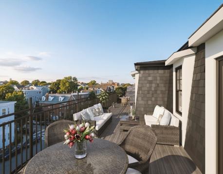 GORGEOUS EXCITING LUXURIOUS NEW CONSTRUCTION ...TOP FLOOR TWO BEDROOM NR TUFTS GREEN LINE WITH OVERSIZED DECK and non tndm one car prkng. THE FIRST OF 12 UNITS TO BE RELEASED AT THE CORINTHIAN RESIDENCES. Under half a mile to the Red Line and less than a mile to the Green Line Subway. Exceptional energy efficiency and soundproofing with custom craftsmanship throughout including paneled moldings, built in shelved entertainment center and lightly stained wide plank hardwood floors. Luxury Chef's Kitchen with quartz counter breakfast island and all upgraded stainless applncs. Primary En Suite Bedroom with custom closet. Stroll through your Atrium Door and enjoy lazy summer afternoons on your oversized frnt porch. FANTASTIC LOCTATION just a couple of blocks from Tufts... Rated a Walker's Paradish Walk Score of 91 with an Excellent Transit Score and a Very Bikeable Bike Score of 89. Classic yet Contemporary Mansard Victorian Vibe. Unit is 95% Complete and anticipated occupancy in 60 day!