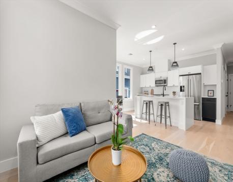 Built in 2022, this this bright and airy 1,180 SqFt second floor condo offers 2 bedrooms, 2 full baths, and a study, ideally located just moments from vibrant Inman Square, Union Square, and the new Union Square T station.The open kitchen/living/dining area is anchored by a generous island and framed by oversized windows that fill the space with an abundance of natural light. The study provides a perfect work-from-home setting or flex space. The sleek kitchen features Bosch appliances, quartz countertops, and contemporary cabinetry. The spacious primary suite features a walk-in closet and ensuite bath, while the well-proportioned second bedroom includes a good-sized closet and access to a full hall bath. A balcony, in-unit laundry, elevator access to one heated garage parking spot, bike storage, and a common roof deck with fabulous Boston skyline views complete this gorgeous home.