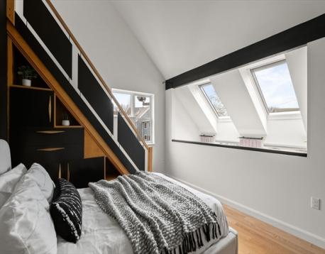 Looking for something a little different? With contemporary finishes and a thoughtful design, the look and space of this 2-bedroom+ townhouse could be what you’ve been waiting for. At the heart of this distinctive residence is the lofted ceiling, accompanied by oversized windows and skylights bathing all three levels in light from a sunny, southern exposure. On the first floor you’ll find an open living and dining area, a half-bath, access to the exclusive use deck, and the kitchen featuring custom cabinets, stainless steel appliances, and matte quartz countertops. Head upstairs for the primary bedroom with impressive designer closets, the stylish 2023-renovated bathroom, and an open lofted bedroom with stairs leading up to the bonus space on the third level, perfect for an office or home gym. Set along the Mystic River, Somerville’s Ten Hills neighborhood offers parks, a walking & bike path, easy access to the MBTA, I-93, and nearby Assembly Row with shopping and restaurants.