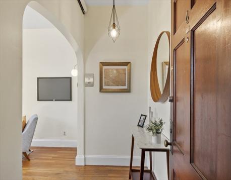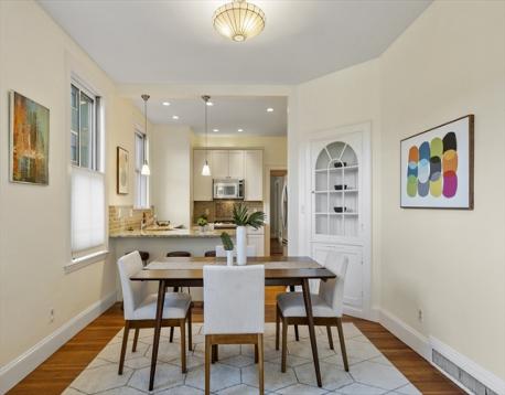Located just blocks from the heart of Davis Square and across from Hodgkins Park, this sun drenched two bedroom, two bathroom unit sits on the first floor of a beautiful Victorian building with two outdoor spaces perfect for gardening, entertaining, and play. Soaring 9-foot ceilings and large windows create an airy, light-filled space. With excellent flow, the entry vestibule opens to an inviting living room equipped for a home theater. A gracious archway links to a dining room with original period cabinets and a thoughtfully laid out kitchen with granite countertops. The primary suite has two large closets and an en suite bath with washer/dryer, marble floors, a floating wood vanity, two recessed cabinets, and a large walk-in shower. The second bedroom makes for a beautiful bedroom, nursery, or office. Six-unit condo building is half owner occupied, has ample reserves, and includes deeded parking space and large basement storage. 5-minute walk to T, bus, bike path and restaurants.