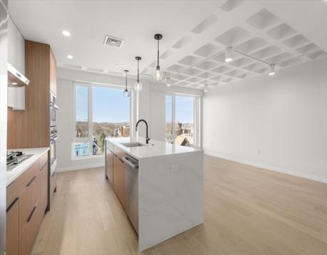 Welcome to the Belmont in Somerville's Spring Hill! This stylish 1BD, 1.5BA residence features stunning floor-to-ceiling windows that offer breathtaking views and abundant natural light and one parking space! Inside, you'll find warm luxury finishes, perfect for entertaining and daily living. The modern kitchen boasts high-end Bosch stainless steel appliances and elegant cabinetry, seamlessly flowing into the spacious living area. Relax on your private deck, ideal for morning coffee or evening unwinding. At the Belmont the you will enjoy the convenience of elevator access & a chic lobby with space to relax in front of the fireplace or use the co-working space. Additional features include storage units for purchase and a lush common yard for gatherings. With easy access to Somerville's trendy bars, restaurants, cafes, and bike paths, you'll love the vibrant community. Plus, quick connections to Cambridge and downtown Boston keep you close the city's best amenities!