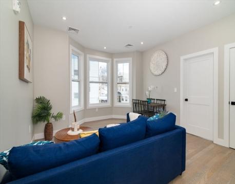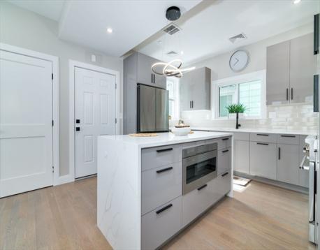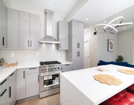 Refined Urban Living in Prime East Somerville. Perfectly positioned minutes from Assembly Row, Union Square, and downtown Boston, this beautifully reimagined second-floor residence offers 1,180sqft of stylish living space. The thoughtfully designed layout features 3 bedrooms and 2 contemporary bathrooms, complemented by nearly 9-foot ceilings and abundant natural light. The sleek chef’s kitchen is appointed with a striking waterfall island, quartz countertops, and stainless steel appliances, ideal for both everyday living and entertaining. The primary suite provides a peaceful retreat, while the additional bedrooms offer flexibility for guests or a home office. Enjoy modern conveniences including in-unit laundry, two deeded parking spaces, and a private storage shed. Constructed for durability and efficiency with cement board siding, new windows, updated systems, central A/C, hydro-air heating, and Navien tankless hot water. HERS rating of 44. A true turnkey home you don't want to miss