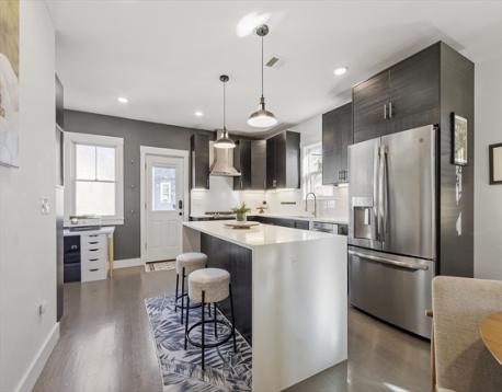 Sky-high living meets urban convenience in the heart of Winter Hill. This renovated 3-bedroom, 2-bath condominium offers a flexible layout topped by a private primary suite with vaulted ceilings and direct access to a private rooftop deck—an everyday outdoor escape above the city. The main living level features an open-concept design where the living room, dining area, and kitchen flow seamlessly for comfortable daily living and entertaining. Two additional bedrooms and a versatile office or bonus room provide ideal flexibility for remote work or guests. Renovated in 2018, the home is move-in ready with modern finishes and updated systems throughout, plus one off-street parking space for added ease. Enjoy quick access to the Somerville Community Path and Gilman Square Green Line station, along with Winter Hill cafés, restaurants, and neighborhood amenities just moments away.