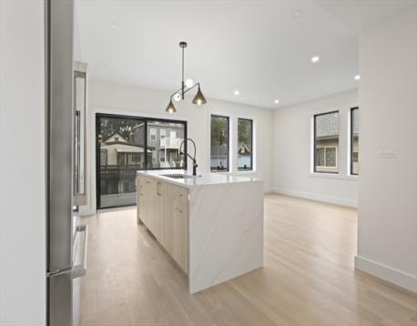 Welcome to this beautifully crafted 4-bedroom, 4-bathroom new construction condo located in the heart of East Somerville. Enjoy a bright, open-concept layout where the living and dining areas seamlessly connect to a sleek, contemporary kitchen which features locally manufactured cabinetry, solid surface quartz countertops and Bosch appliances. Just off the living space, step onto your private deck, ideal for relaxing or dining outdoors. This thoughtfully designed home includes two ensuite bedrooms, offering privacy and convenience—perfect for guests, roommates, or multigenerational living. The primary suite features a spacious walk-in closet and a luxurious en-suite bathroom. A flexible den space adds even more versatility. Other features of the unit - 1 deeded parking space, in-unit laundry and central air conditioning. Live just minutes from Assembly Row, Union Square and downtown Boston while enjoying the charm and community of East Somerville.