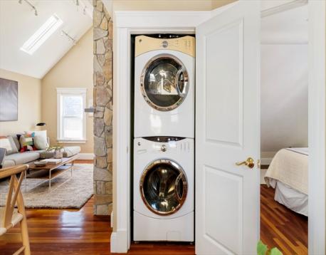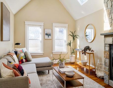 Spring Hill. Tastefully renovated in 2008, this 2 bed/1 bath top-floor condo is set in a picturesque Victorian, less than one mile to Porter, Davis, and Union Squares, and two short blocks to the Community Path and the Lowell Street GLX station. The mudroom entry is a perfect landing place for coats and bags, and provides access to the private porch. Upstairs, the light-filled, open-concept main level welcomes you with its vaulted ceilings, gas fireplace, and many skylights. The eat-in kitchen has terrific workspace on its oversized peninsula, a large vented hood, and ample storage. The dining area has great utility with an adjacent built-in desk. Both well-proportioned bedrooms offer generous closet space. The common patio is ideal for gathering friends and family. Other amenities include in-unit W/D, a new on-demand hot water heater, and central air. Located minutes from top-rated eateries and cafés, 148 Lowell unites Victorian residential calm with a dynamic urban lifestyle.