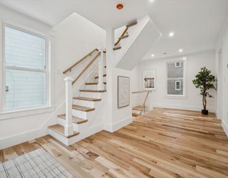 Welcome to 15 Spring Hill Terrace— where timeless New England charm meets sophisticated modern living. This stunning 4-bed, 3.5-bath welcomes you w/ warm hickory floors & a show-stopping floating glass staircase. The chef’s kitchen impresses w/ a Wolf range, waterfall quartz countertops, breakfast bar & custom cabinetry. A restored stained-glass window brings artful heritage to the open dining area, while the living room’s sleek gas fireplace is the perfect backdrop for entertaining or relaxing in style. Upstairs there are 3 spacious bedrooms, including a primary suite w/ a private balcony, dual closets, fireplace & spa-inspired bath w/ a steam shower. The lower level includes a guest suite, family room w/ wet bar, full bath, laundry room & utility closet w/ one of the 2 home’s heat pumps. Outside, enjoy a modern patio & paver driveway w/ parking for two+. Also equipped for EV charging. Every detail embodies luxury, comfort, accessibility & the best of modern Somerville living!