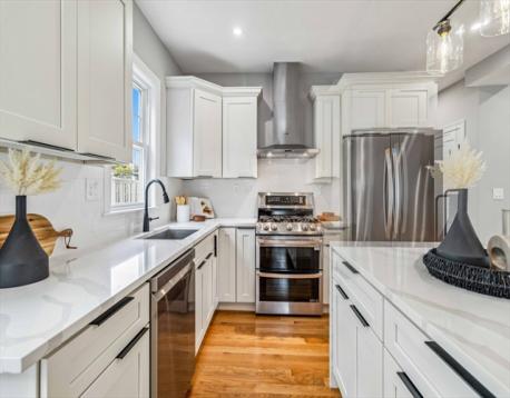 Location, Location, Location. Ideally situated along the Community Path with easy access to the East Somerville Green Line Extension (5 mins) and Downtown Boston (10–12 min). Cambridge, Harvard, MIT, and Tufts University are all within a short commute.Set on a one-way street with ample on-street parking, this fully renovated home offers 4 bedrooms, 3 full baths, plus a flexible bonus room for office, studio, or guest use. The open layout connects living, dining, and kitchen areas, featuring a waterfall quartz island, LG stainless steel appliances, double gas oven, and Bosch vented hood. Hardwood floors throughout the main level.The finished lower level includes a family room/gym, bedroom, full bath, and additional bonus space. A strong opportunity for both end-users and investors. Schedule your showing today.