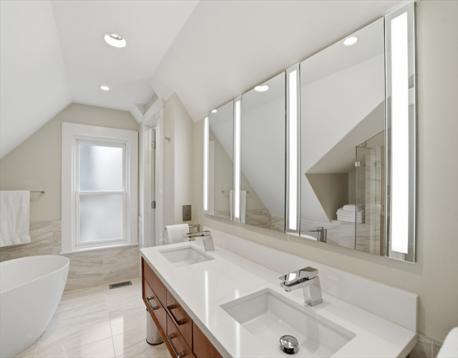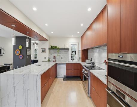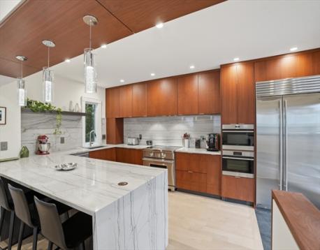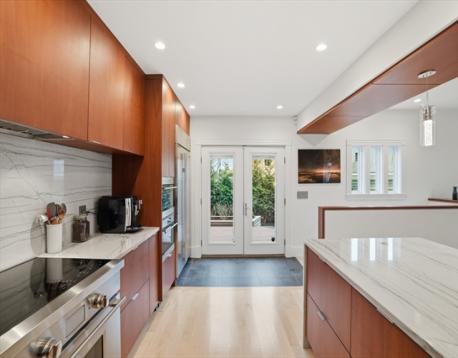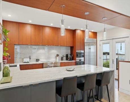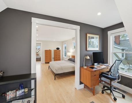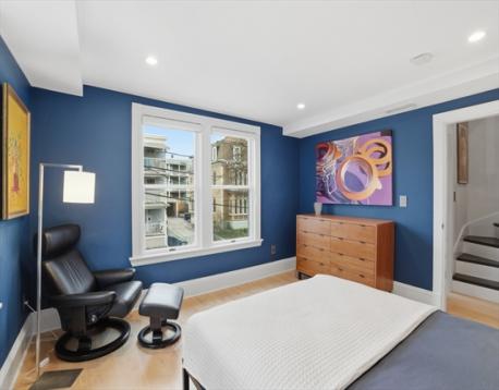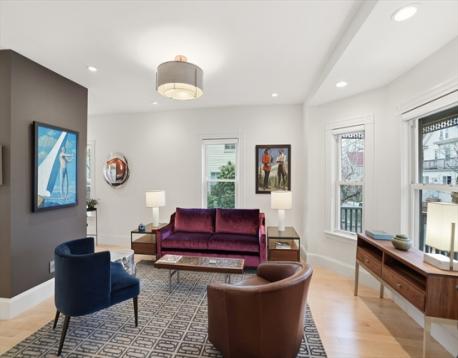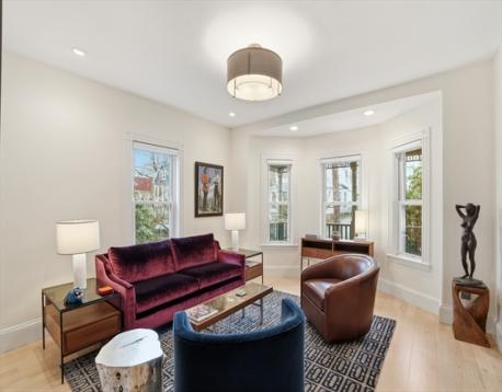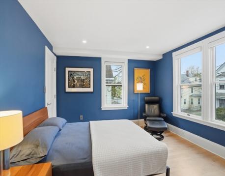 This stunningly renovated turnkey home artfully combines an historic Victorian exterior with a striking modernist interior for the best in luxury living! The main level is flooded with light on 3 sides from the living room's bay window in front to the kitchen's French doors in back. And what a kitchen! Warm yet sleek custom cabinets and spectacular quartzite counters and backsplash are the perfect backdrop for the finest Wolf & Sub-Zero appliances - 36" induction range plus built-in combi-steam and microwave ovens for whipping up everything from gourmet feasts to reheating leftovers with ease. Enjoy that meal in the dining area or step outside to the landscaped garden and patio. 2nd floor includes full bath, 2 bedrooms, laundry room, and large 2nd living area that can easily be another bedroom. Above is the grand primary suite w/stunning bath, walk-in closets, and bonus room for office or nursery. Large garage (wired 4 chg), mudroom, basement storage all just blocks from Davis Square!