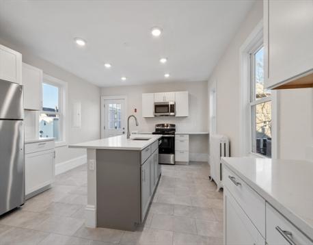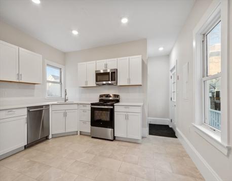 Centrally located and fully renovated, 17 Everett Ave presents a turnkey multi-family opportunity ideal for both investors and owner-occupants. Both units feature all-new electrical and plumbing, brand-new GE appliances, and beautifully refinished hardwood floors throughout. A newly constructed front porch adds valuable flex space to the second unit, perfect for a home office, sunroom, or additional living area. Each unit offers private entrances and in-unit laundry with brand-new machines. The property also includes the rare advantage of a three-car garage along with a private driveway, providing ample off-street parking. Delivered vacant, the home is ready for immediate occupancy or income potential. Unit 1 offers two bedrooms, one full bath, and a spacious single-level living layout, while Unit 2 spans the second and third floors and features three bedrooms, one full bath, and a walk-in closet.