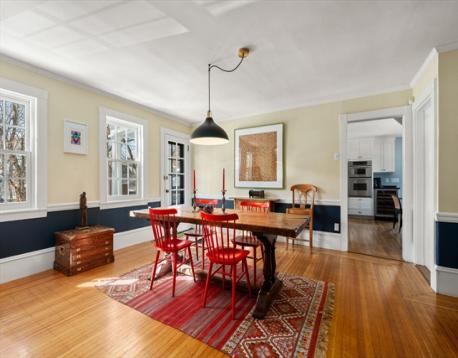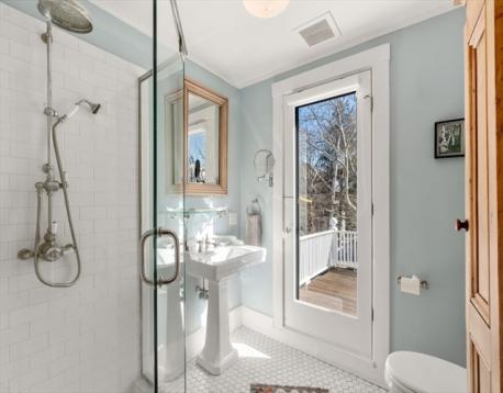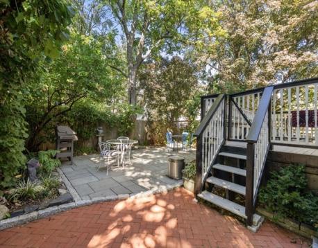 The Preservation Award winning Adams–Locke House is a stunning representation of Greek Revival architecture nestled behind a beautiful garden, setback from the road with 5 luxurious outdoor spaces and a two car garage. This home, on The Historic Register, is highlighted by a charming front porch welcoming you home with Doric columns. The house has been beautifully restored to reflect the grandeur of its era with a double parlor graced by fireplace, 9 foot ceilings, 6 over 6 towering windows, ceiling medallions, bull's-eye moldings & pocket doors. Formal dining room w/ original built-ins. All while including modern conveniences such as central air and a chic farmer's kitchen overlooking the beautiful fenced in back patio. The home offers plenty of space for any family with four large bedrooms including two with en-suite bathrooms. The sizeable finished attic & full height basement offer bountiful opportunity to grow. Unique and decadent front yard & romantic deck off the bedroom level.