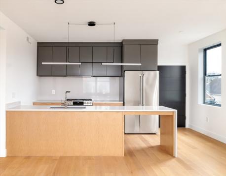 Experience elevated city living in this meticulously designed top-floor new construction 2-bed, 1-bath home in the heart of Somerville. A sun-filled open layout flows into a designer kitchen with GE Café appliances, gas range with double oven and air fryer, built-in microwave, and custom cabinetry. High-end finishes include Grohe fixtures and curated materials throughout. Spacious bedrooms offer comfort and flexibility. Mitsubishi Hyper Heat ensures year-round efficiency. Enjoy a private roof deck with sweeping Boston skyline views, perfect for entertaining or relaxing. Smart features include face and palm recognition entry. Ideally located near Union and Inman Squares, transit, and top dining, this turnkey home offers modern luxury in a vibrant neighborhood. Bike storage also available.