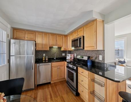 Welcome home to this nicely maintained townhome in an unbeatable location. Situated right on the Cambridge line, you are steps away from Union Square (Green Line MBTA) in one direction and Inman Square in the other. The main level features a great layout for living and entertaining, complete with gleaming hardwood floors. The eat-in kitchen offers granite countertops, stainless steel appliances, and ample storage. Sliding doors lead to your private outdoor patio. Upstairs, you'll find two large bedrooms, one with a full en suite bath, vaulted ceilings, and brand new carpet. The entire unit has been freshly painted. A full, private basement provides excellent extra storage or potential for future expansion. This comfortable home is part of an association that is primarily owner-occupied. Don't wait to call this terrific place home!