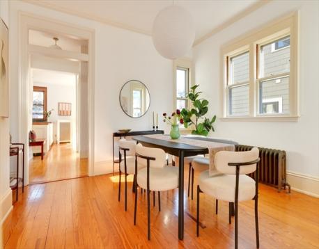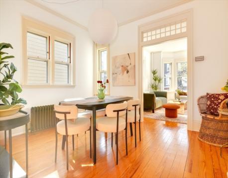 Between Davis and Teele Square sits this handsome Victorian home, its striking two-story bay window evoking an era when craftsmanship mattered & homes were built to last. Spanning four levels, the home offers a parlor floor with 9-foot ceilings, a second floor with 8-foot ceilings, a basement & a walk-up attic ready for expansion. Inside, warm pine floors and classic details create an inviting, character-rich atmosphere. The kitchen, with a generous eating area, is bathed in afternoon sun and wrapped in classic wood-trimmed windows. A flexible layout includes a first-floor bedroom a second-floor sitting room and dedicated home office, plus a bonus loft space. Two full bathrooms feature whimsical vintage tile. The yard offers a charming urban retreat with a brick patio, grassy lawn with excellent southern exposure, and a three-car driveway. Just four blocks from Davis Square, with access to the Red/Green Lines & close to the community bike path, H Mart, Somerville theatre & the Burren