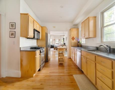 A rare opportunity to own a home just steps from Union Square, one of Somerville’s most vibrant and historic destinations, located only a quarter mile from the Green Line station. Nestled on a quiet side street at the base of Prospect Hill, where the first American flag was raised in 1776, 21 Stone combines neighborhood charm with urban convenience. From the private entry, you’re welcomed into an open light-filled living and dining space, where tall ceilings and large windows set a warm, inviting tone. The kitchen is both stylish and functional, with a southeast facing breakfast nook that captures the morning light. Additional perks include private laundry and storage in the basement, an off-street parking space, and shared patio ideal for outdoor gatherings. With award winning restaurants, cafés, and markets just around the corner, this home offers modern comfort rooted in the rich history and energy of Union Square.