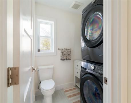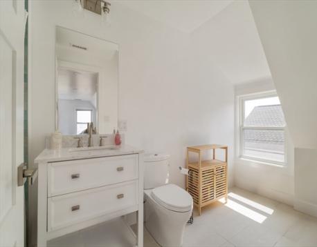 Stunning 2023 renovated 3-bed/3.5-bath plus office gut renovated 2-level luxury condo in East Somerville on quiet, tree-lined street just blocks to restaurants, shops, cafes and short 0.5 miles to both Sullivan Square orange line and new East Somerville green line T stops. Open concept living/dining/kitchen area with 9' ceilings and tons of light throughout. Chef's kitchen with Quartz island, Bosch appliance package, and shaker cabinets. Shared half bath, large master bedroom with ensuite bathroom + Elfa walk-in closet system, and office space round out the second floor. Third floor contains two more large bedrooms with skylight, each with ensuite bathrooms and high-end Grohe bathroom trims. Central AC and heat, plus W/D hook-ups off kitchen. Private back porch plus shared patio space. Exclusive use driveway for two cars with level 2 charging outlet in place. Plenty of additional storage in basement. Rated very walkable with walk score of 91!