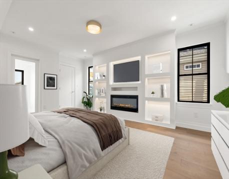 Fully renovated in 2025 by Genesis Construction, this chic home offers high-end finishes throughout. The 1st floor offers an open floor plan that flows from the living room to the dining room and into the family room with an electric fireplace. The chef's kitchen features an island, subway tile backsplash, quartz countertops, a Thermador gas range, Bosch dishwasher, Fisher Paykel refrigerator, and a convenient pantry with double Thermador ovens and wet bar with an icemaker. There is also a 1/2 bath & mudroom with access to the back porch, patio & yard. Upstairs, the opulent primary suite offers built-ins, an electric fireplace, walk-in closets, office, and 4-piece bath with a double vanity & soaking tub. There are 2 more bedrooms, a study, bathroom, and laundry room on this floor. The top level houses a sitting room with porch access, 2 more large rooms, and a hall bath. The lower level provides a 41' recreation room with a full bathroom and extra storage. Just 1/2 a mile to Tufts.