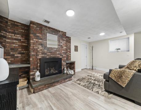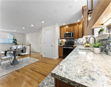 INCREDIBLE VALUE...PRISTINE BRICK 4 BEDROOM LESS THAN A HALF MILE TO THE ORANGE LINE AND A HALF MILE TO THE GREEN LINE WITH EXCLUSIVE USE 2-3 CAR DRIVEWAY...Fantastic condition with over 1700 sq ft on 2 levels. Great open floor plan perfect for entertaining....including a bonus 20 ft fireplace family room. Lovely Cherry Stained Wood Cabinet Kitchen with custom tile back splash, beautiful granite counters, plenty of cabinet space and all recent stainless appliances...plenty of room for a dining room table. Nice spacious bedrooms 15'x11', 15'x11', 14'x11' and 14'x10'... Hardwood floors. Updated modern baths...main bath has radiant heated floors. In Unit Laundry. Cozy back patio area with pergola perfect for those lazy summer afternoons with friends and family. Your own private 2-3 Car Driveway is a huge plus and a rare find! PARADISE LOCATION with a Walker's Paradise Walk Score of 91 and a Biker's Paradise Bike Score of 93. Five Minutes from Assembly Row.