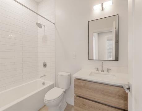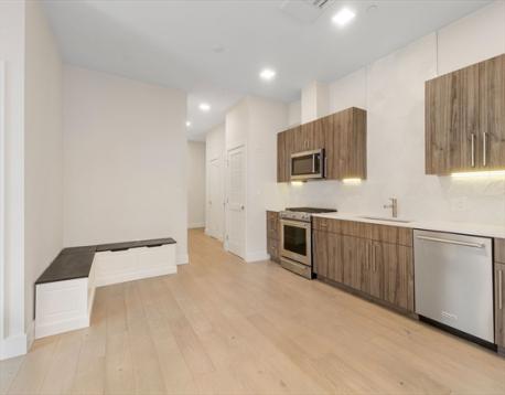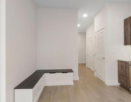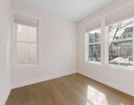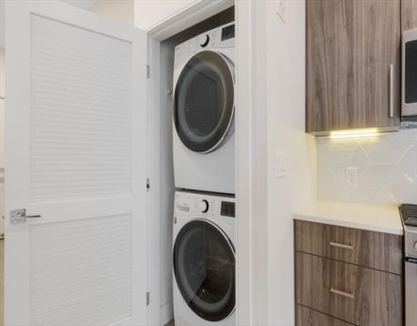 Sun-filled and built in 2020, this sophisticated one-bedroom offers refined, low-maintenance living in a boutique 10-unit building just steps from Assembly Row and the Broadway Corridor. The open layout feels airy and efficient, anchored by a sleek kitchen with stone countertops, stainless steel appliances, custom cabinetry, and geometric tile backsplash. Hardwood floors and oversized windows bring warmth and light throughout. The spa-inspired bath features a tiled shower and floating vanity. Central heat and A/C, in-unit laundry, generous storage, and a low condo fee make daily living effortless. One of only two units with access to a shared deck, this home offers rare outdoor space in a highly connected location under a mile to the East Somerville Green line stop and to Sullivan Square with quick access to Boston, Cambridge, and major highways.