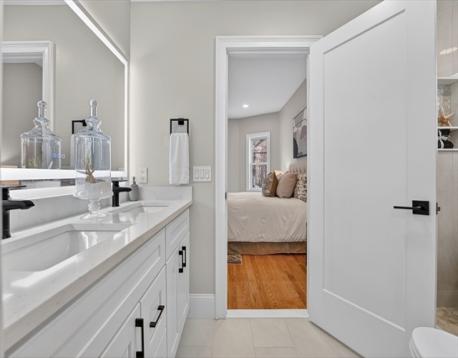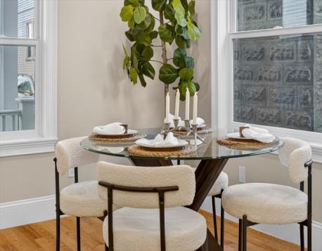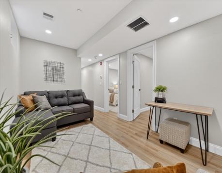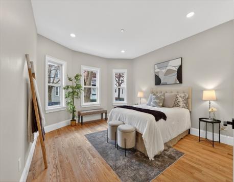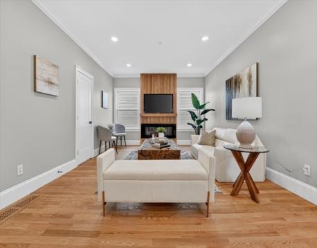 LESS THAN A QUARTER MILE TO THE GREEN LINE AND A HALF MILE TO THE RED LINE. STUNNING TOTAL GUT RENOVATION in highly sought after Tufts-Ball Square Neighborhood...Spread out in over 2300 sq ft of ultra modern luxury living. Includes EXCLUSIVE USE Three Car Driveway, EXCLUSIVE USE garage and EXCLUSIVE USE YARD. Four total bedrooms, two full baths and a great lower level family room. Spectacular Open Floor Plan perfect for entertaining. Fantastic Chef’s Kitchen with gas stove direct vent, great counter space, quartz brkfst bar and totally upgraded stainless applnce package. Adjacent full size open dining area. Delightfully large living room w/ vertical oak channel fireplace mantel and wide plank hrdwd flrs. Sexy contemporary feel with steel cable railings. Primary Suite with designer double basin full ultra modern bath including light frame strip. Complete exterior/ interior french drain & waterproofing. Excellent soundproofing. Completely insulated and exceptional energy efficiency!