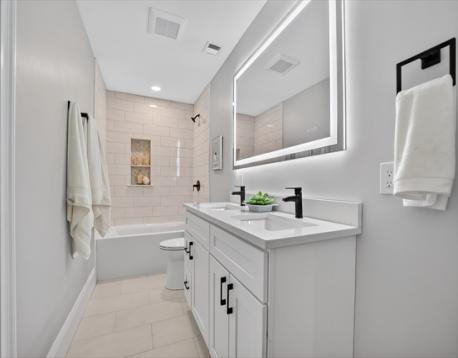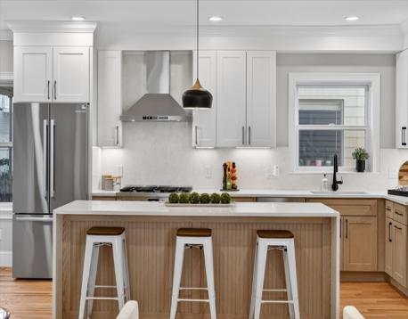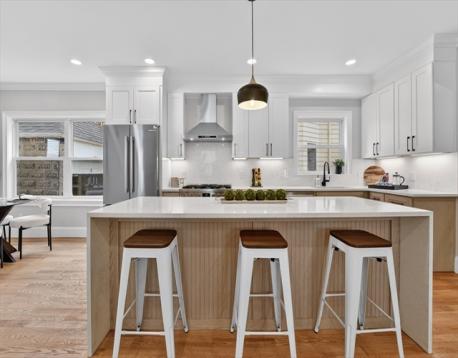 LESS THAN A QUARTER MILE TO THE GREEN LINE AND A HALF MILE TO THE RED LINE. STUNNING TOTAL GUT RENOVATION in highly sought after Tufts-Ball Square Neighborhood...Spread out in over 2100 sq ft of ultra modern luxury living. Includes EXCLUSIVE USE Three Car Driveway, EXCLUSIVE USE garage and EXCLUSIVE USE YARD. Four total bedrooms, two full baths and a great lower level family room. Spectacular Open Floor Plan perfect for entertaining. Fantastic Chef’s Kitchen with gas stove direct vent, great counter space, quartz brkfst bar and totally upgraded stainless applnce package. Adjacent full size open dining area. Delightfully large living room w/ vertical oak channel fireplace mantel and wide plank hrdwd flrs. Sexy contemporary feel with steel cable railings. Primary Suite with designer double basin full ultra modern bath including light frame strip. Complete exterior/ interior french drain & waterproofing. Excellent soundproofing. Completely insulated and exceptional energy efficiency!