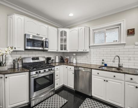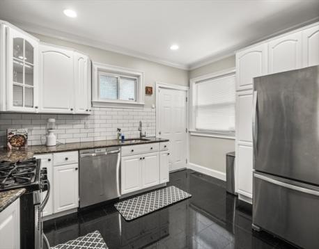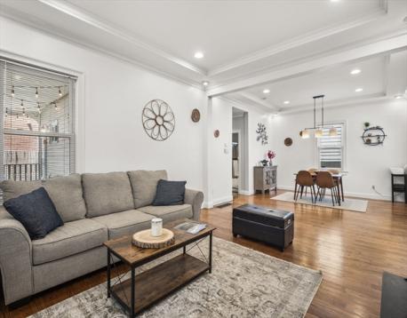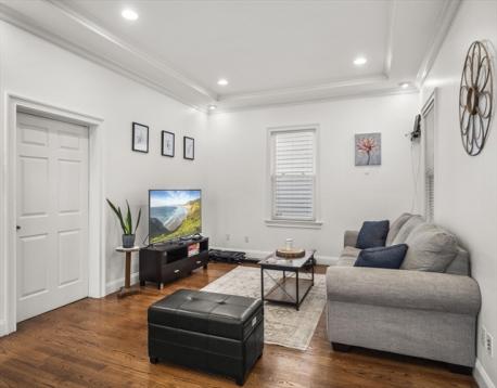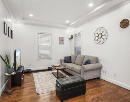 Amazing 2-bedroom rehabbed condo in vibrant East Somerville with soaring ceilings, open floor plan and classic Mansard-style charm. Sun-filled living and dining area features elegant tray ceilings and an open, spacious layout. Large primary bedroom offers a picturesque bay window. Modern bath includes a sleek glass-enclosed tub. Versatile second bedroom is ideal for a home office or guest space. The beautiful eat-in kitchen features granite countertops, a classic subway tile backsplash, and ample cabinetry. Enjoy your exclusive private deck—perfect for morning coffee or evening relaxation under hardwired Edison lights. Additional highlights include central air, a double-depth coat closet, and generous basement storage with direct access. Prime location just steps from the orange line T, Assembly Square, shopping, dining, Mystic River paths, and walkable to Union Square and the Green Line. Easy highway access. Deceptively spacious—don’t miss it!