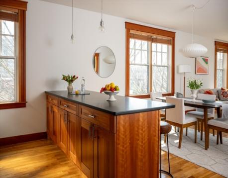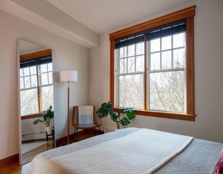 A warm, light-filled retreat in Somerville that feels tucked away in the trees, right in the middle of everything. A corner one-bedroom condo, 432 Norfolk St. # 3B - set within a distinctive David Aposian building - offers a rare sense of calm and connection. With southeast exposure and windows on multiple sides, natural light fills the space throughout the day, enhancing the warmth of custom fir millwork, doors, and thoughtful upgrades completed for the original owner. High ceilings and a well-proportioned layout create a space that lives easily, with in-unit laundry and generous closet space adding everyday practicality. Set up high and surrounded by beautiful mature landscaping, the home takes on a treehouse-like quality when the foliage is in bloom. Ideally located near Union Square’s Green Line, as well as Inman, Kendall, and Harvard Squares, with a Walk Score of 96, Bike Score of 100, & Transit Score of 84. Parking available across the street for an additional fee.