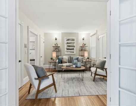 Four room 1+ BR unit in a classic six fam in East Somerville. Half mile to Assembly Row & Sullivan Sq Orange Line “T” station, 1 mile to Union Sq & the Green Line “T” station, 1.5 miles to Encore, & 2 miles to North Station. Bright 1st floor unit w/ South exp with high ceilings. Spacious LR and BR, updated eat-in kitchen, and a plus room off the LR separated by French doors. Can be a 2nd BR, an office, or expanded living space. Large EIK provides plenty of room for “two cooks in the kitchen”. White cabinets and appliances, granite countertops with a subway tile backsplash, recessed and pendant lighting, and there’s plenty of space for a kitchen table. Period details include hardwood flooring throughout, the previously mentioned high ceilings and French doors, and classic window and door casings with rosettes. Other features include parking in a private driveway (nice!), in-unit full sized stack laundry, and plenty of storage in the basement.